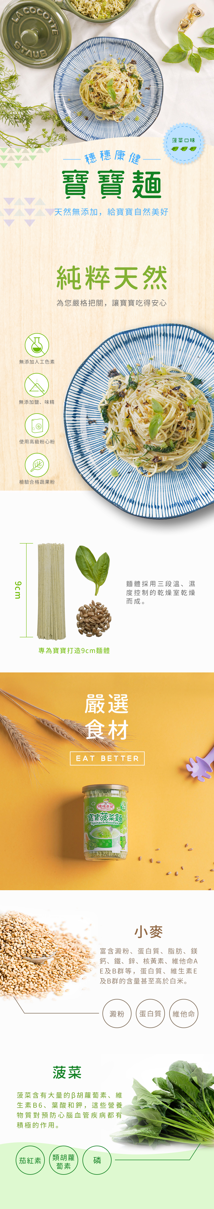 寶寶麵選用高級粉心粉製作,無添加任何人工成分。