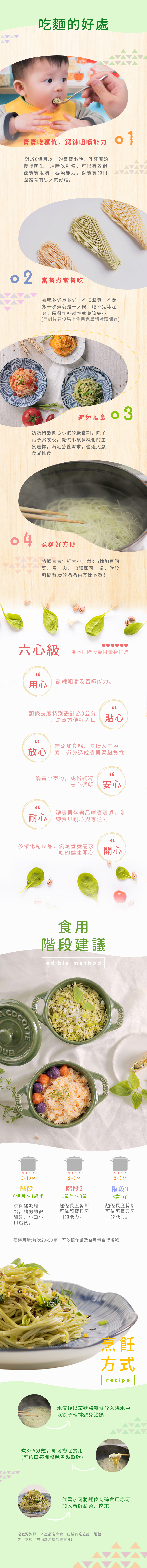♡ 用心:透過吃寶寶麵,幫助寶寶訓練咀嚼及吞嚥能力,健康成長。
