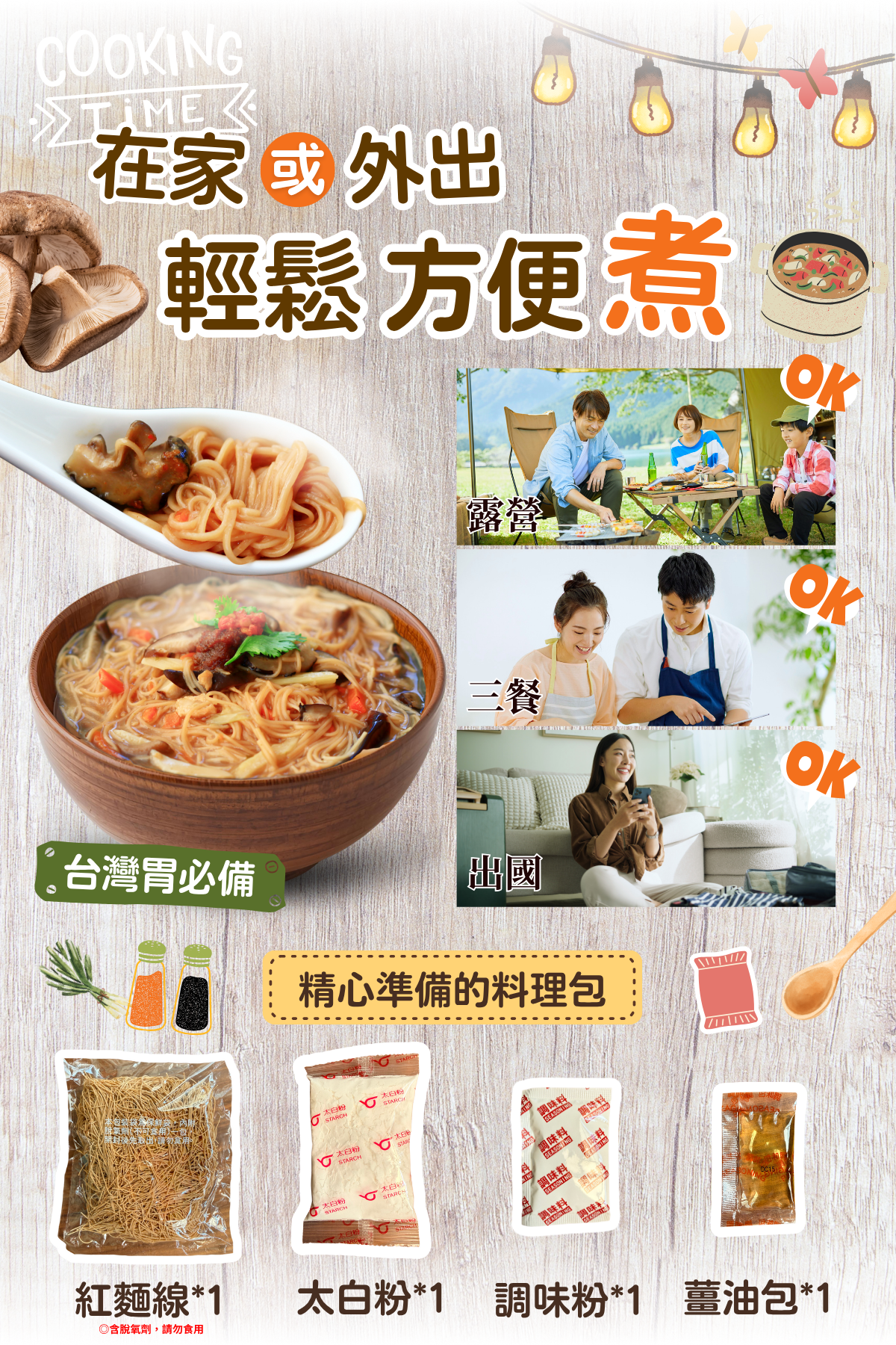 1、準備2400cc的滾水,依序放入麵線、調味料,並烹煮6-10分鐘