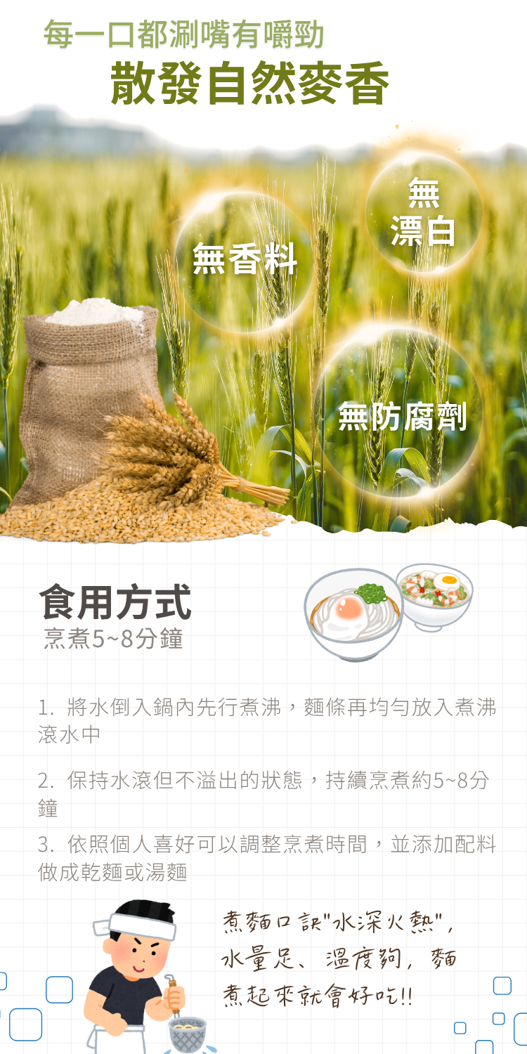 ・使用高品質粉心粉,無人工添加物,散發自然麥香