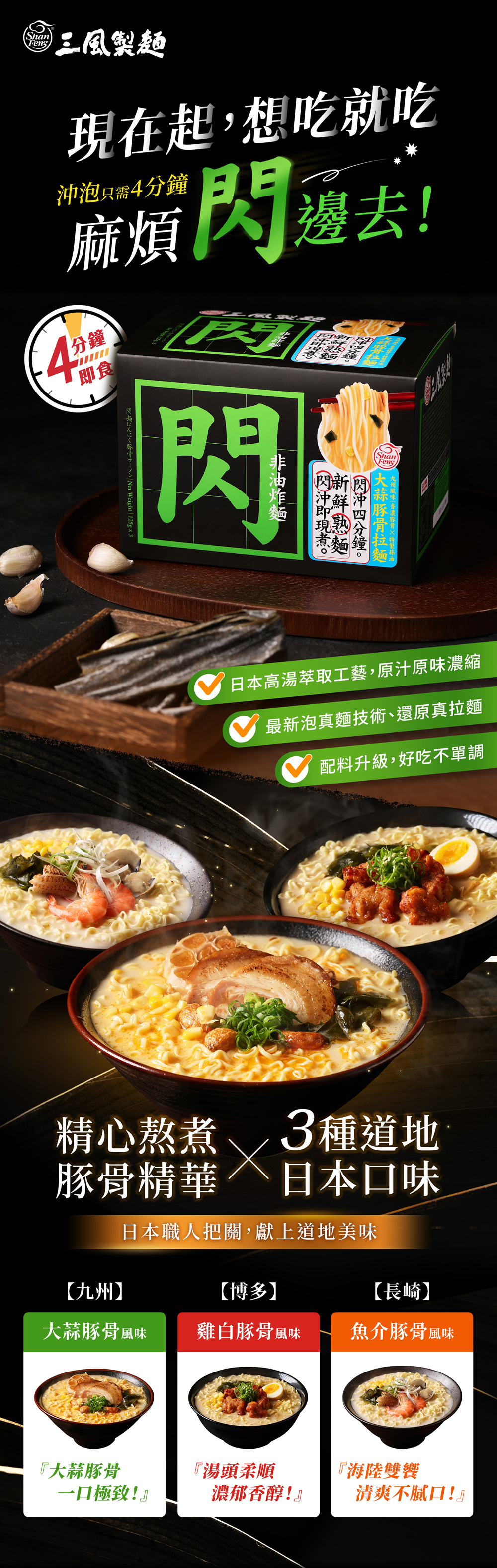 ※可依個人喜好調整麵體烹調時間和調味包使用量。