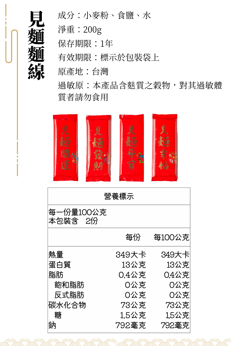 三風製麵將這份傳統的古早味,賦予不同的祝福,包藏在紅包袋裡,搭配設計精美的吉祥圖飾,
