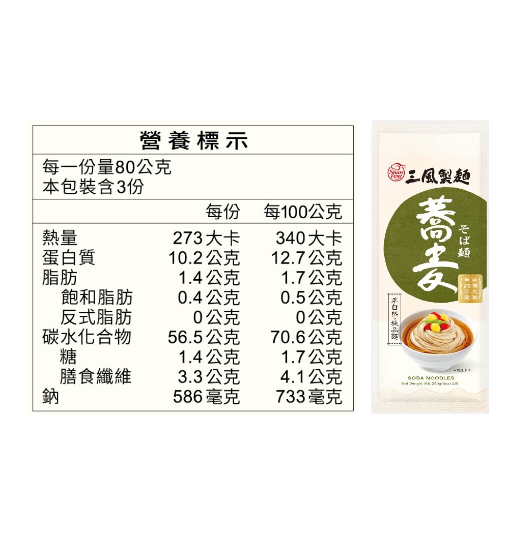 ・使用精選蕎麥,含有膳食纖維