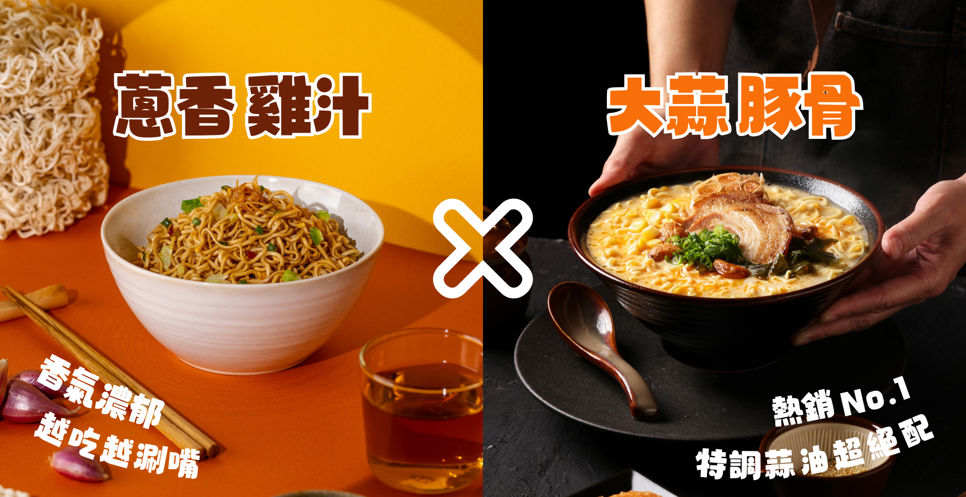 ・2種口味 (蔥香雞汁乾拌麵x大蒜豚骨拉麵)